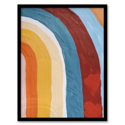 Artery8 Mid Century Modern Rainbow Painting Abstract Boho Kids Bedroom Artwork Framed Wall Art Print A4