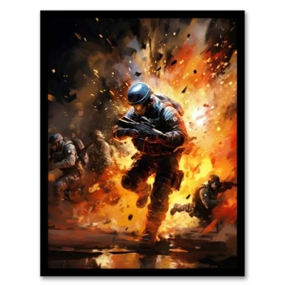 Artery8 Military Operation Army Explosion Scene Action Artwork Painting Framed Wall Art Print A4