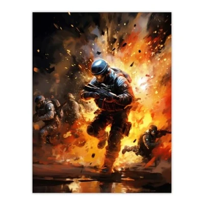 Artery8 Military Operation Army Explosion Scene Action Artwork Painting Large Wall Art Poster Print Thick Paper 18X24 Inch