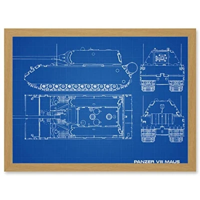 Artery8 Military Panzer VIII Maus Super Heavy Tank Blueprint Plan Artwork Framed Wall Art Print A4