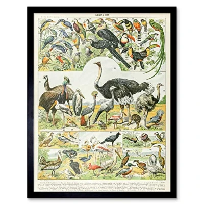 Artery8 Millot Encyclopedia Page Birds Ostrich Emu Art Print Framed Poster Wall Decor 12x16 inch