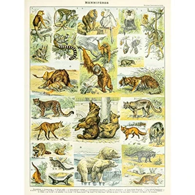 Artery8 Millot Encyclopedia Page Mammals Lion Bear Large Wall Art Poster Print Thick Paper 18X24 Inch