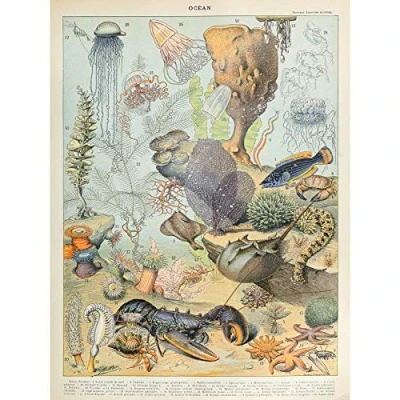 Artery8 Millot Encyclopedia Page Ocean Animals Premium Wall Art Canvas Print 18X24 Inch