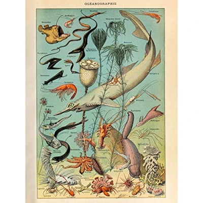 Artery8 Millot Encyclopedia Page Ocean Fish Shark Premium Wall Art Canvas Print 18X24 Inch