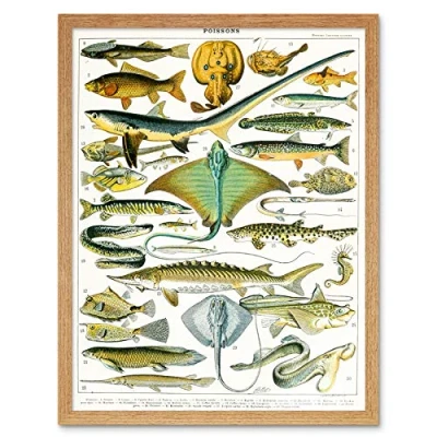 Artery8 Millot Encyclopedia Page Sea Fish Variety Art Print Framed Poster Wall Decor 12x16 inch