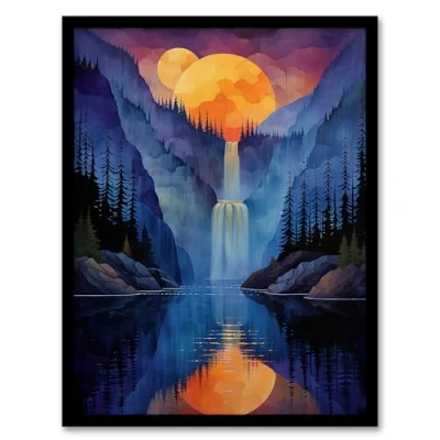 Artery8 Mirror Moon Waterfall Watercolour Night Mystic For Living Room Artwork Framed Wall Art Print A4