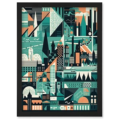 Artery8 Modern Abstract Geometric Dundee Cityscape Design Artwork Framed Wall Art Print A4