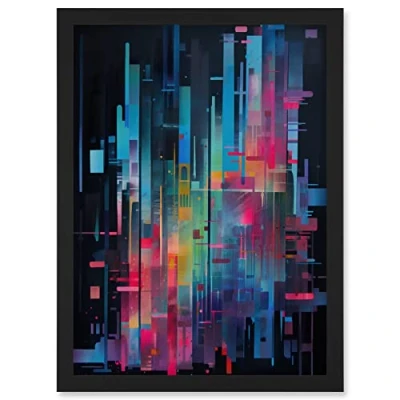 Artery8 Modern Abstract Geometric Neon Lines Cityscape Painting Artwork Framed Wall Art Print A4