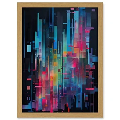 Artery8 Modern Abstract Geometric Neon Lines Cityscape Painting Artwork Framed Wall Art Print A4