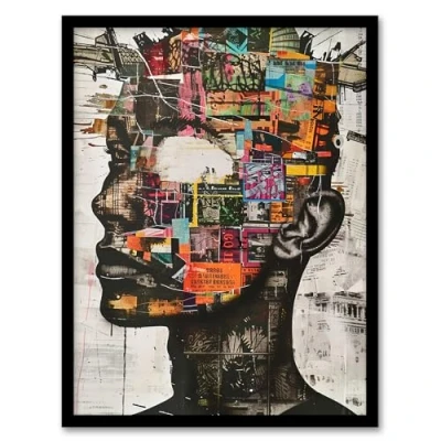 Artery8 Modern Art Punk Portrait Collage Bold Statement Living Room Artwork Framed Wall Print A4