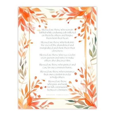 Artery8 Modern Blessed Beatitudes Orange Pope Francis All Saints Day Quote Jesus Christ Christian Bible Faith God Catholic Flowers Artwork Extra Large XL Wall Art Poster Print