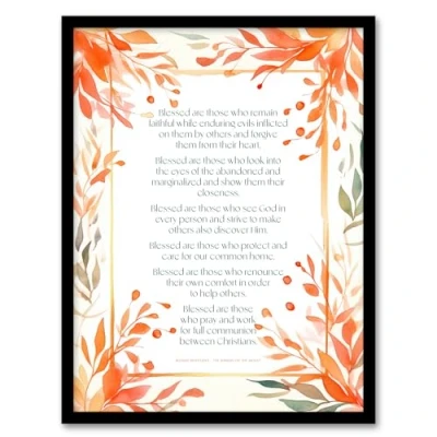 Artery8 Modern Blessed Beatitudes Orange Pope Francis All Saints Day Quote Jesus Christ Christian Bible Faith God Catholic Flowers Artwork Framed Wall Art Print A4