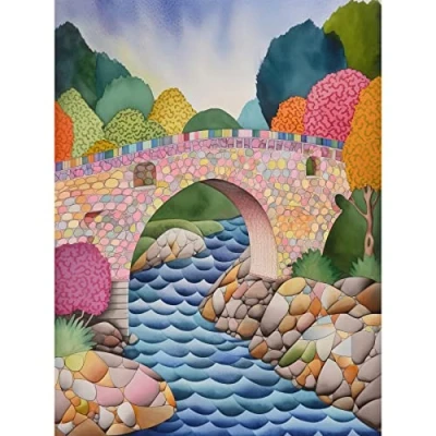 Artery8 Modern Folk Art Countryside Bridge Large Wall Poster Print Thick Paper 18X24 Inch
