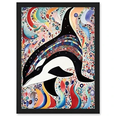 Artery8 Modern Folk Art Pattern Orca Whale Artwork Framed A3 Wall Print