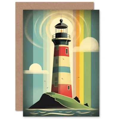 Artery8 Modern Lighthouse Seascape Seaside for Him or Her Man Woman Birthday Thank You Congratulations Blank Art Greeting Card