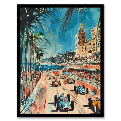 Artery8 Monaco 1973 Vintage Watercolour Motor Racing Man Cave Artwork Framed Wall Art Print 18X24 Inch