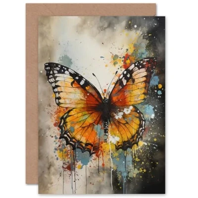 Artery8 Monarch Butterfly Watercolour for Wife Her Mum Sister Daughter Mom Gran Nan Birthday Thank You Congratulations Blank Art Greeting Card