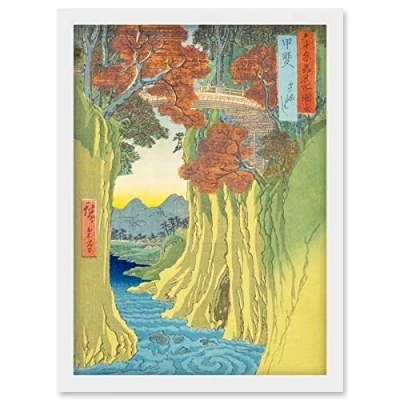 Artery8 Monkey Bridge Kai Province Utagawa Hiroshige Japanese Woodblock Artwork Framed Wall Art Print A4