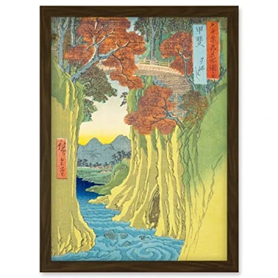 Artery8 Monkey Bridge Kai Province Utagawa Hiroshige Japanese Woodblock Artwork Framed Wall Art Print A4