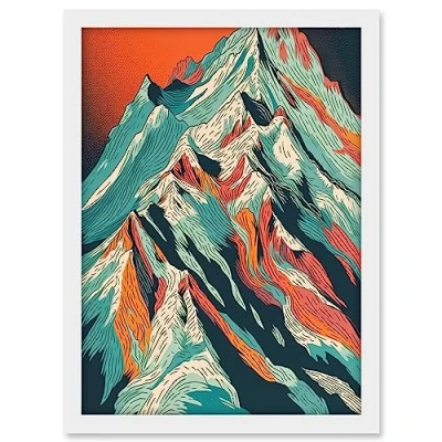 Artery8 Mont Blanc Mountain Peak Linocut Illustration Artwork Framed A3 Wall Art Print