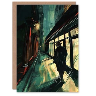 Artery8 Moody Stroll in Alleyway Painting Dark Film Noir Greeting Birthday Card Him Her All Blank