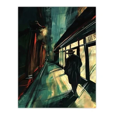 Artery8 Moody Stroll in Alleyway Painting Dark Film Noir Living Room Large Wall Art Poster Print Thick Paper 18X24 Inch