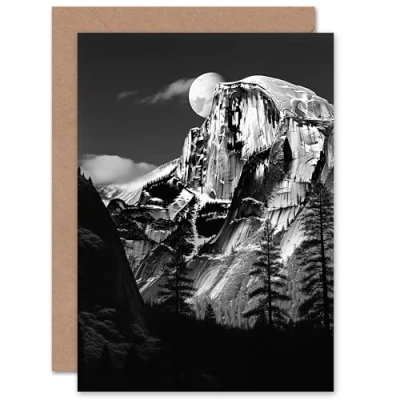 Artery8 Moonrise Behind Half Dome Yosemite National Park for Him or Her Man Woman Birthday Thank You Congratulations Blank Art Greeting Card