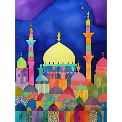 Artery8 Mosque Cityscape Islam Folk Art Large Wall Poster Print Thick Paper 18X24 Inch