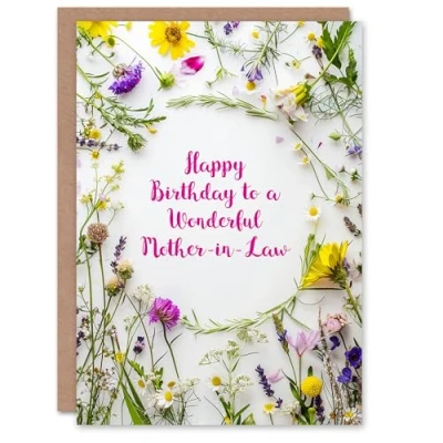 Artery8 Mother In Law Happy Birthday Card Simple Spring Meadow Wildflowers Floral For Her Greeting