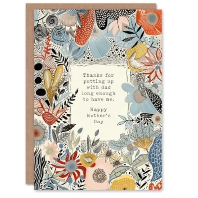 Artery8 Mother's Day Funny Putting Up With Dad Diss Joke Fun Humour Mum Greeting Card