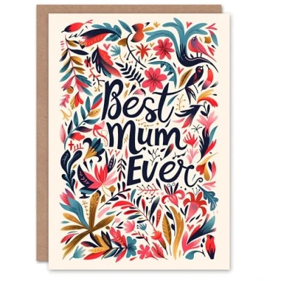 Artery8 Mother's Day Greeting Card Best Ever Floral Letterpress Typography For Mum