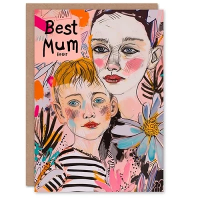 Artery8 Mother's Day Greeting Card Best Ever Floral Portrait with Son For Mum