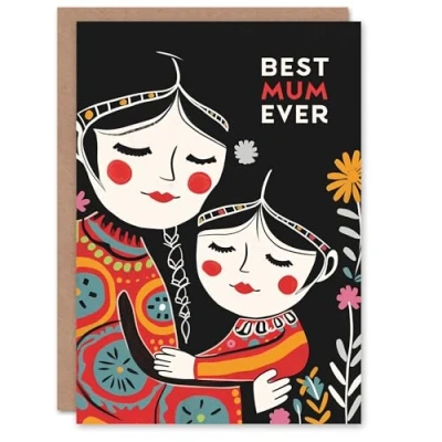 Artery8 Mother's Day Greeting Card Best Ever Mother Child Folk Art Portrait For Mum