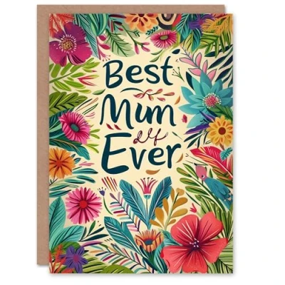 Artery8 Mother's Day Greeting Card Best Mum Ever Tropical Flowers For