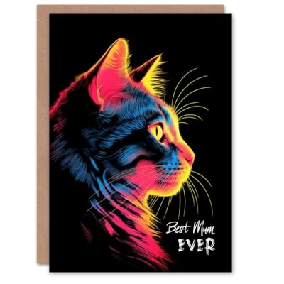 Artery8 Mother's Day Greeting Card Best Mum Ever Vibrant Neon Cat Lover For