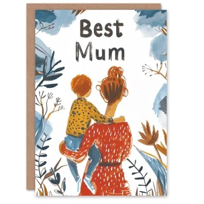 Artery8 Mother's Day Greeting Card Best Mum Holding Son Illustration For