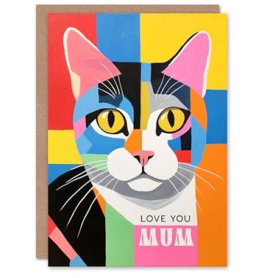 Artery8 Mother's Day Greeting Card Colourful Abstract Cat Love You For Mum