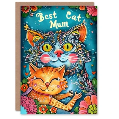 Artery8 Mother's Day Greeting Card Floral Illustration From the Cat Lover For Mum