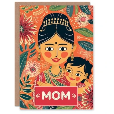 Artery8 Mother's Day Greeting Card Hug Toddler Indian Hindu Mom For Mum