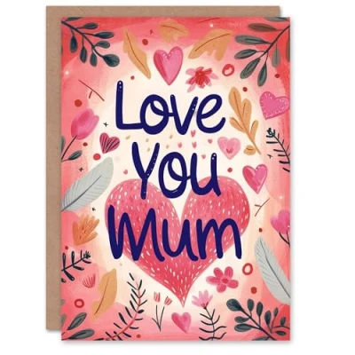 Artery8 Mother's Day Greeting Card Love You Pink Heart Flowers For Mum