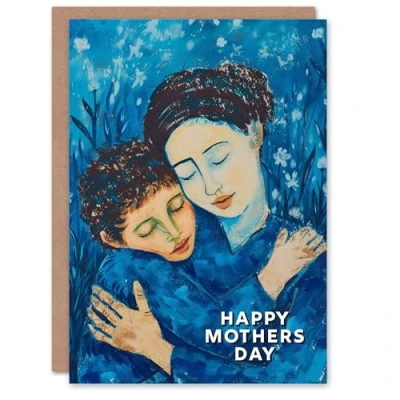 Artery8 Mother's Day Greeting Card Painting Hug Sweet From Son Blue For Mum