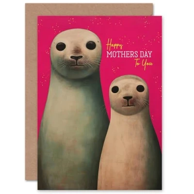 Artery8 Mothers Day Seal with Pup Fun Pink For Mum Mummy Mom Her Blank Inside Greeting Card