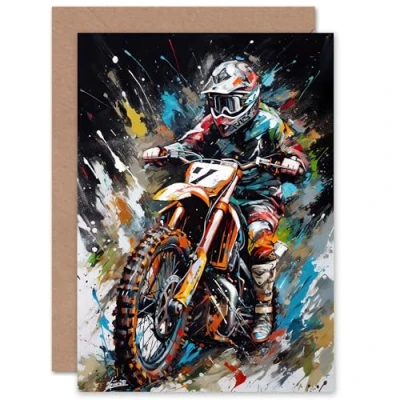 Artery8 Motocross Dirt Bike Action Custom Greeting Card Personalised Message Inside for Husband Him Dad Son Brother Birthday Thank You Fathers Day