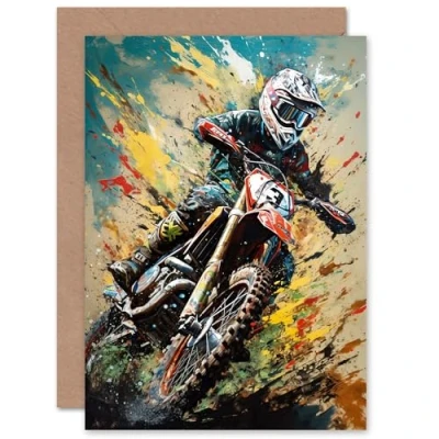 Artery8 Motocross Fan Dirt Pit Bike Race Sport for Husband Him Dad Son Brother Birthday Thank You Fathers Day Blank Art Greeting Card