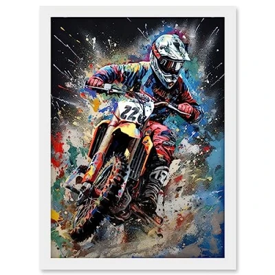 Artery8 Motocross Race Action Shot Extreme Sport Painting Artwork Framed Wall Art Print A4