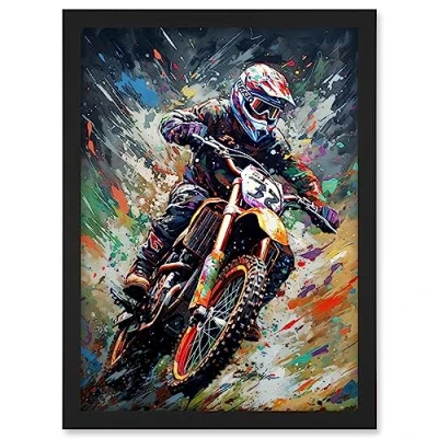 Artery8 Motocross Race Action Shot Paint Splat Portrait Artwork Framed A3 Wall Art Print