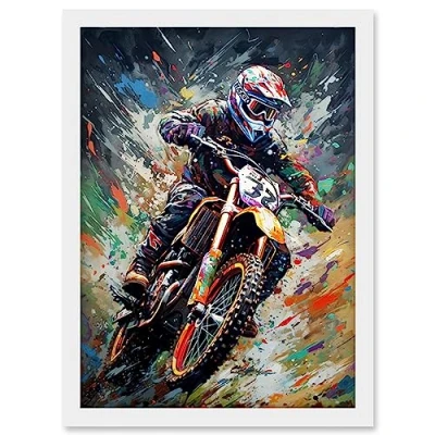 Artery8 Motocross Race Action Shot Paint Splat Portrait Artwork Framed Wall Art Print A4