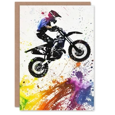 Artery8 Motorbike Dirtbike Motorcycle Rainbow Paint Splat For Him Man Birthday Card