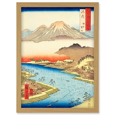Artery8 Mount Otoko in Hirakata Kawachi Province Utagawa Hiroshige Japanese Woodblock Artwork Framed Wall Art Print A4