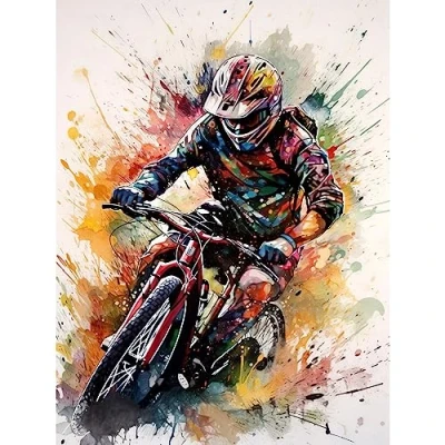 Artery8 Mountain Biker Action Shot Paint Splat Portrait Extra Large XL Wall Art Poster Print